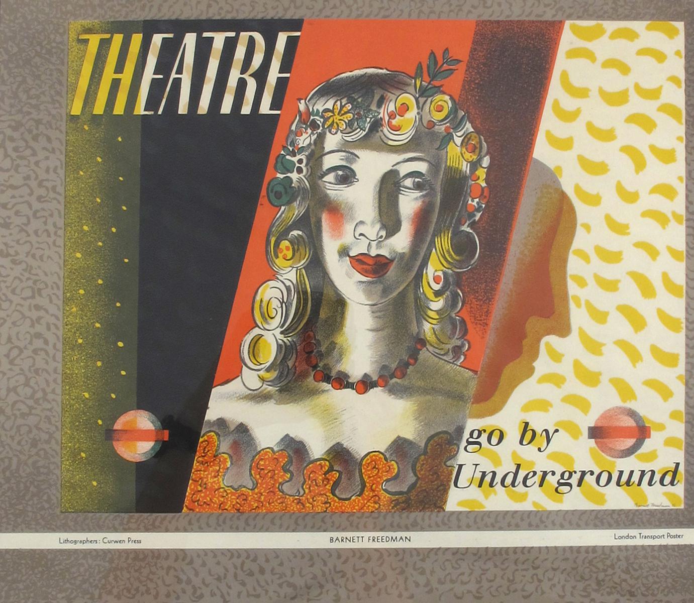 Theatre, Go by Underground,1936, lithograph in colours printed by Curwen Press, framed