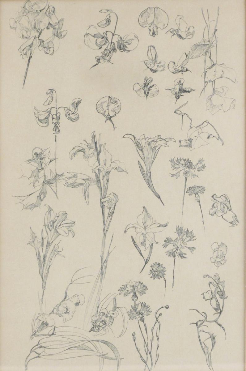 'Flower Studies' engraving on paper from the Edition Graphiques series, the design attributed to Alphonse Mucha, framed unsigned image 35 x 23cm.