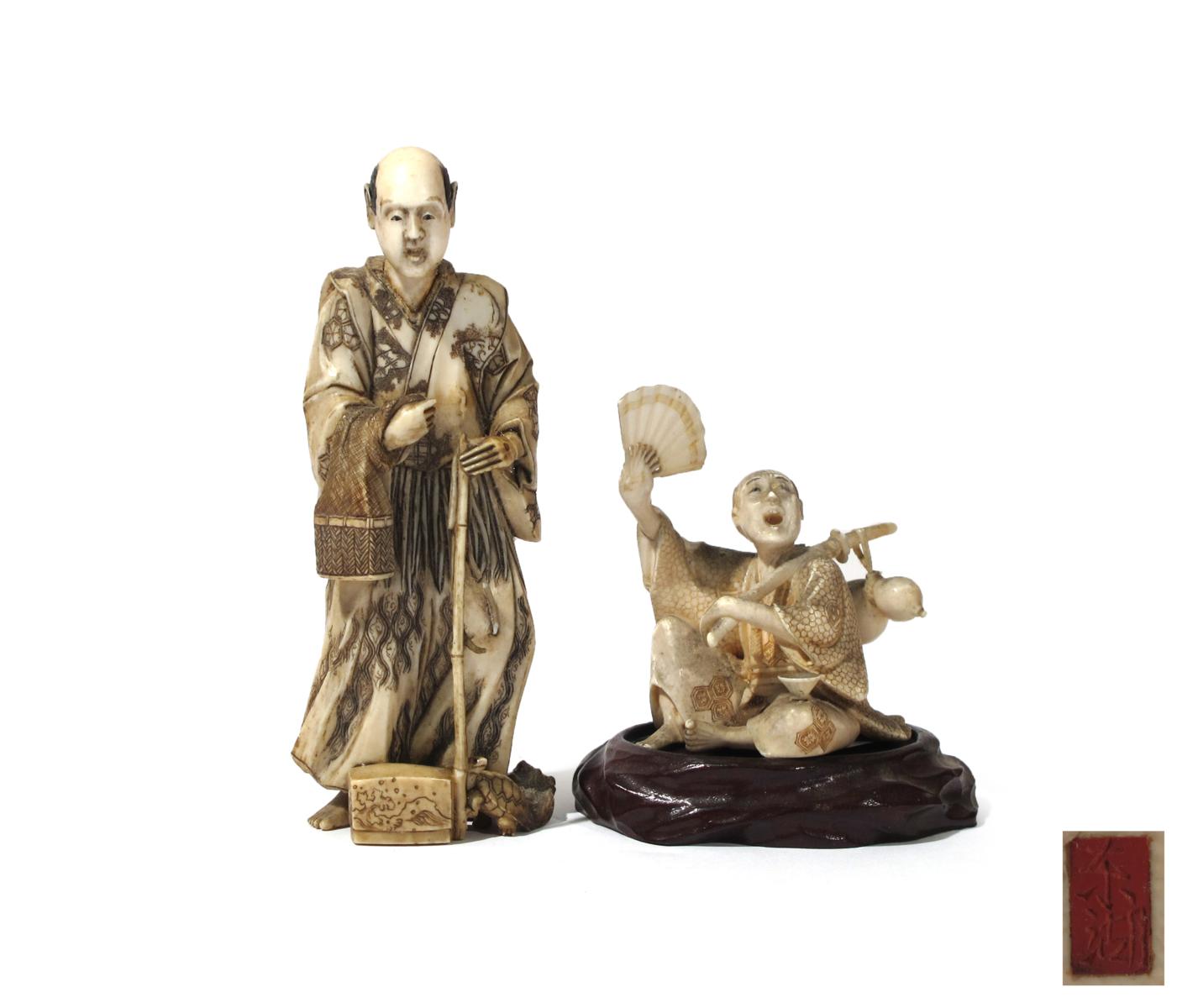 λ Two Japanese ivory okimono Meiji 1868-1912