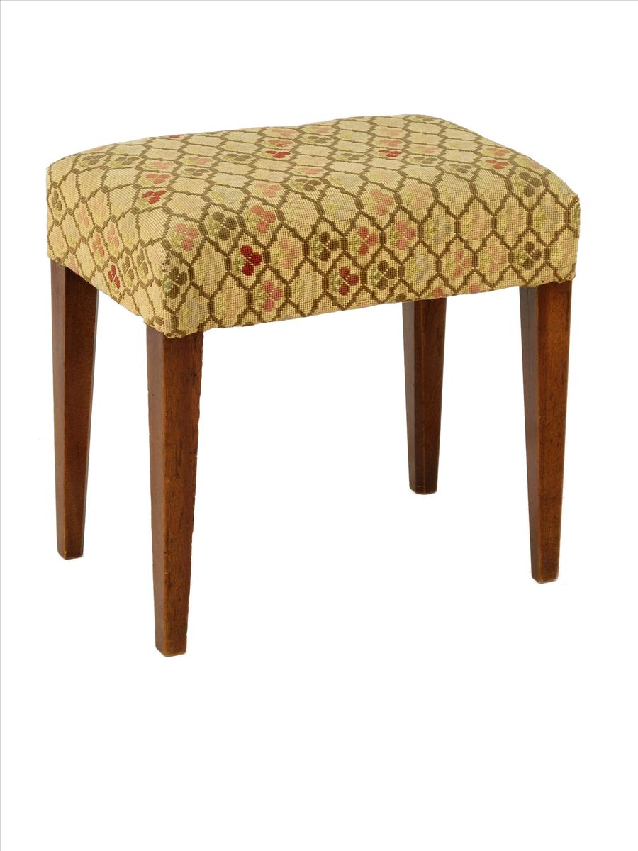 A mahogany stool, on chamfered square tapering legs, 18in (46cm) high, 18in (46cm) wide, 12¾in (32.4cm) deep.