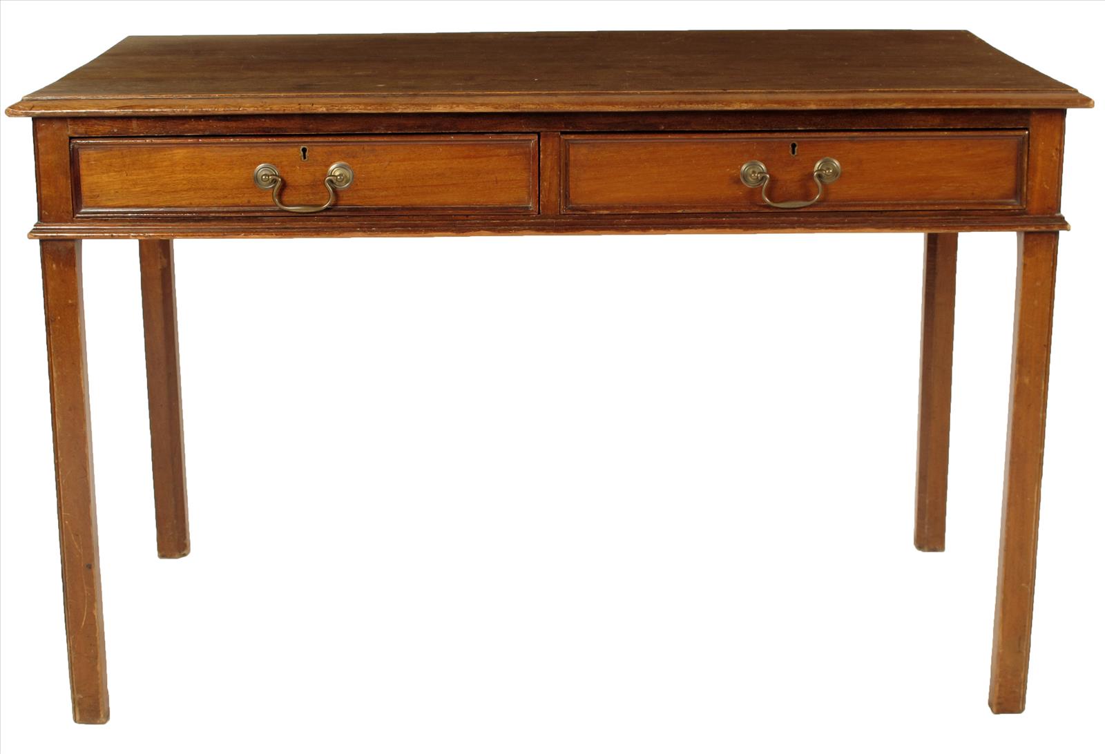 A mahogany writing table in George III style, 19th century, 30¼in (76.7cm) high, 47½in (121.3cm) wide, 26¼in (66.7cm) deep.