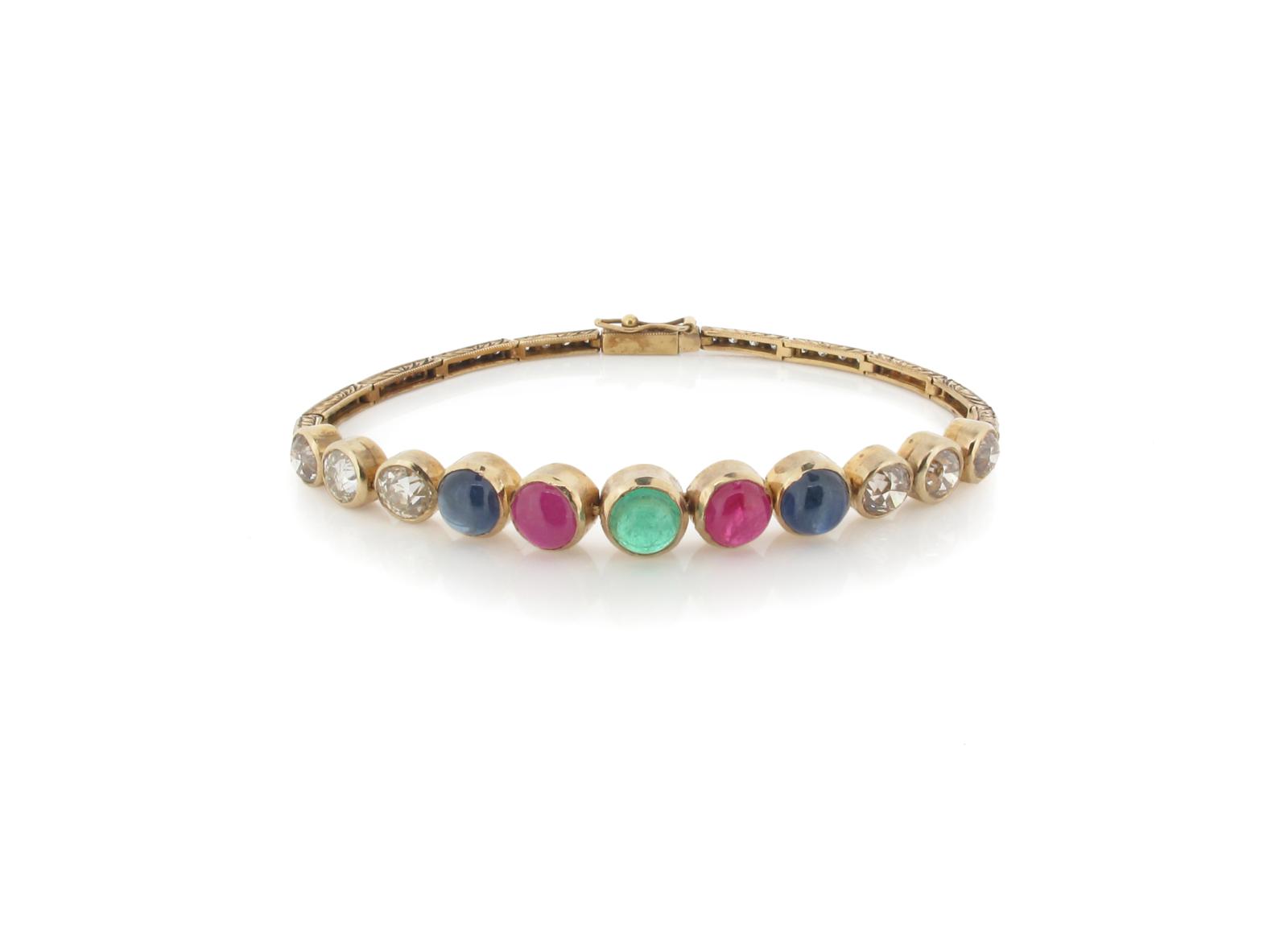 A Russian coloured stone and diamond set bracelet