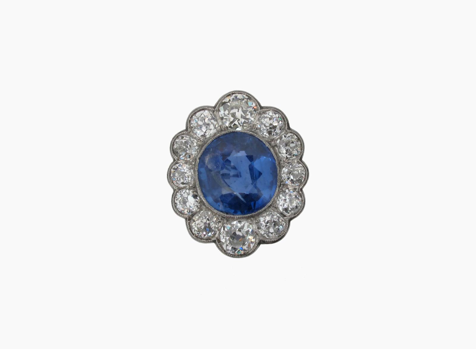 A sapphire and diamond cluster ring