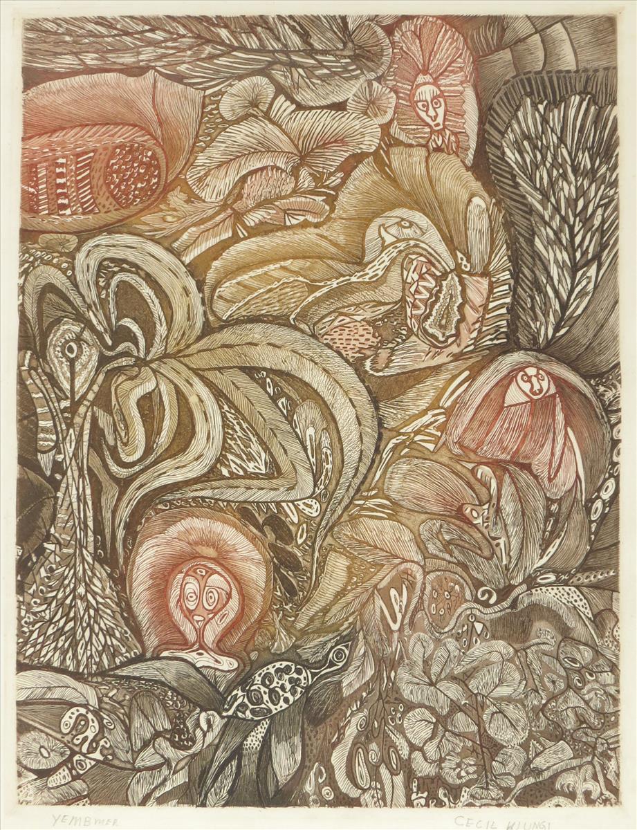 Cecil King Wungi, Papua New Guinea, Yembmer, a coloured engraving, 47 x 37cm.