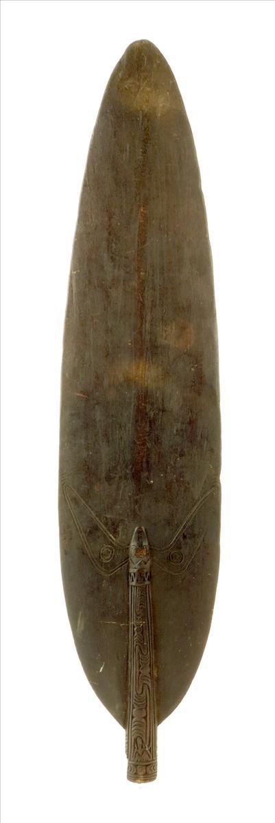 A Papua New Guinea paddle blade, with carved decoration, 71.2cm long.