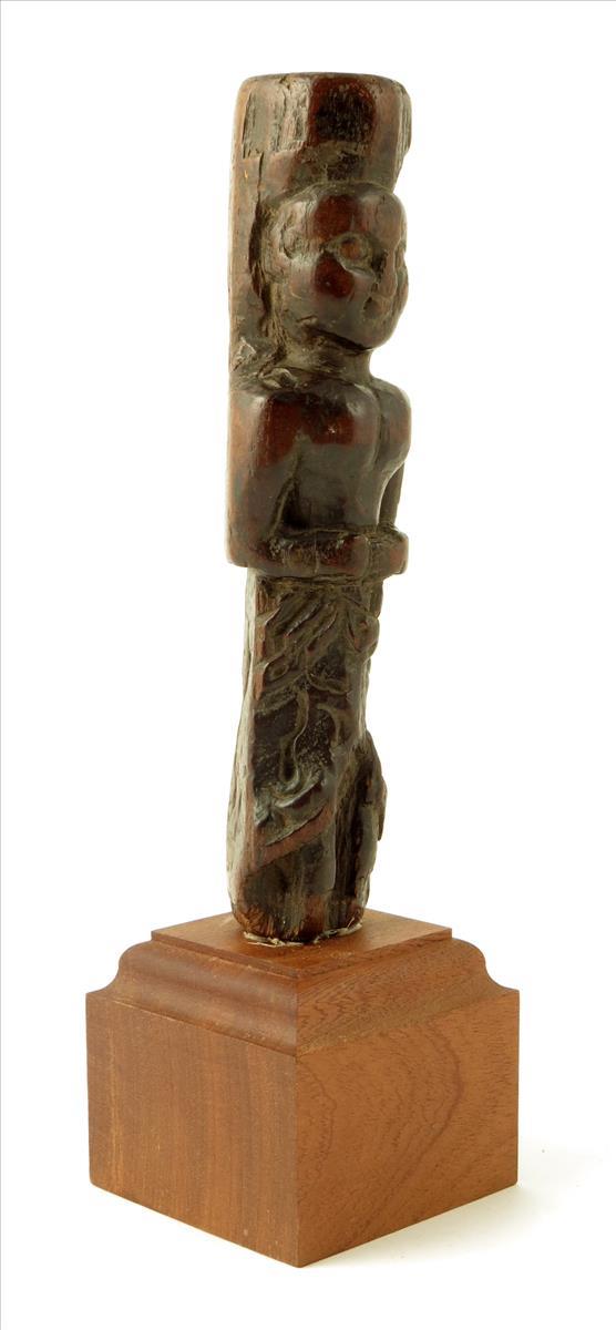 A carved wood figure, possibly Indonesia, on a later fixed base, 27.5cm high.