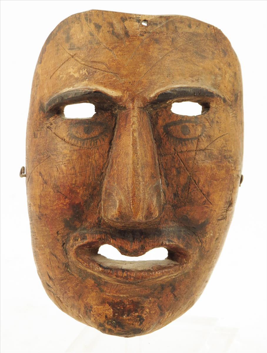 A Mexican mask, with painted eyes and incised lines, 18cm high.