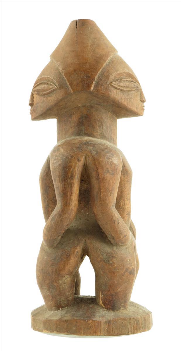 A twin group, male and female with a pierced conical coiffure, 27.5cm high.