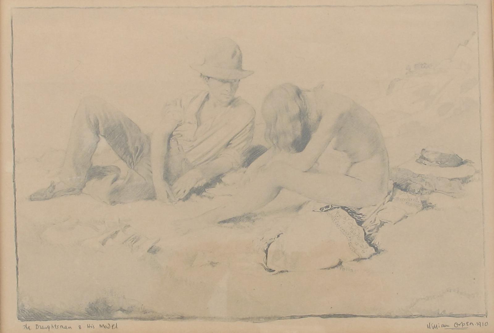 'The Draughtsman and His Model' a print by William Orpen, dated 1910, framed titled, signed and dated in the print, image 23 x 16cm