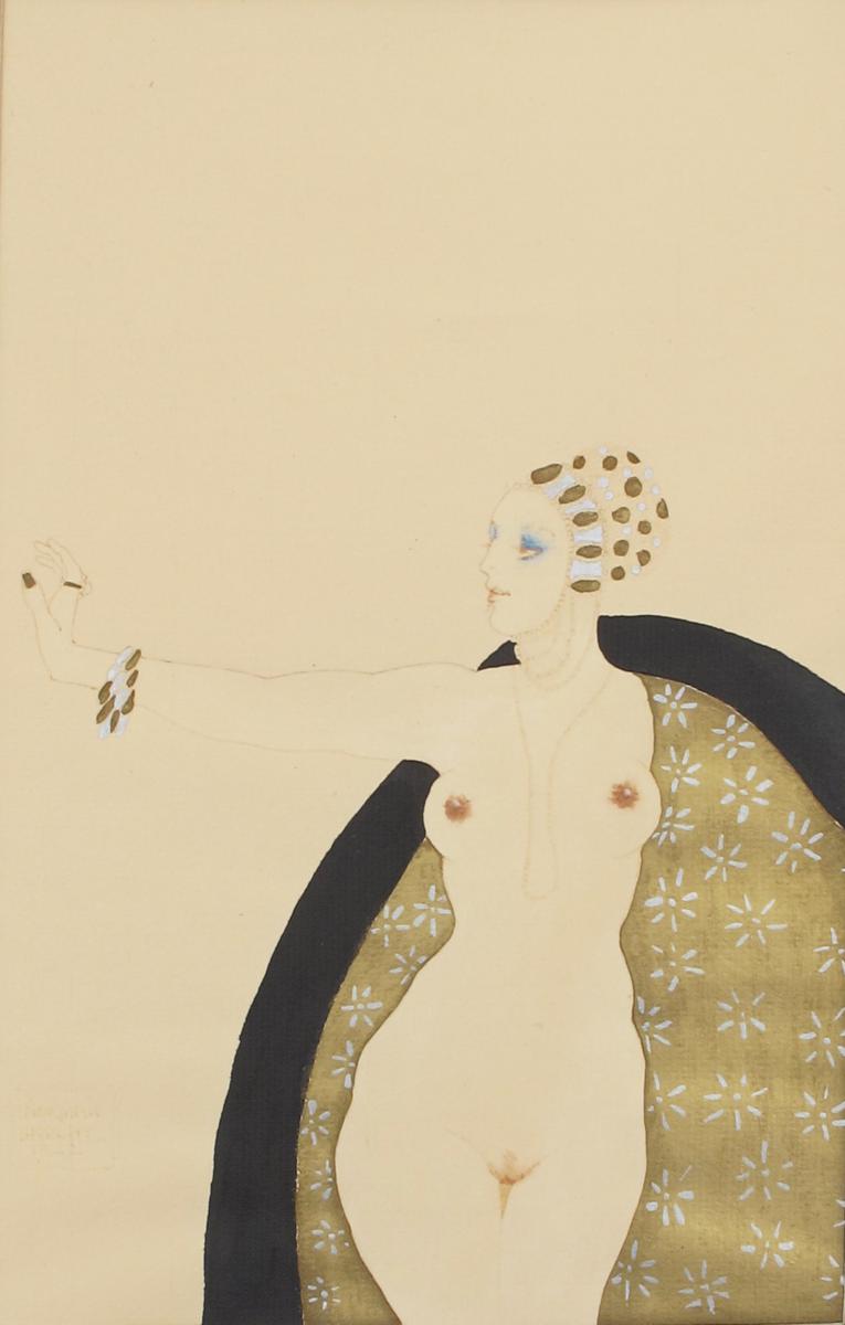 watercolour on paper, highlighted in gilt, framed feint signature lower left