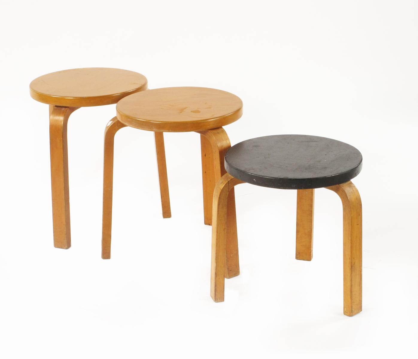 Three Finmar stools/occasional tables designed by Alvar Aalto