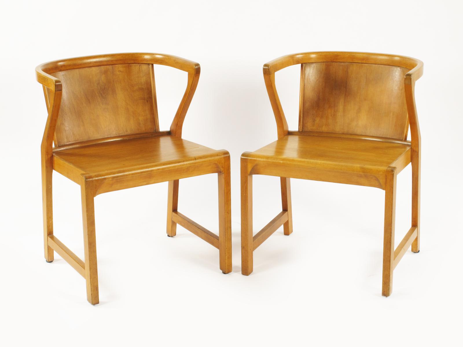 A pair of Finmar Kakkonen (no.2) birch armchairs designed by Alvar Aalto