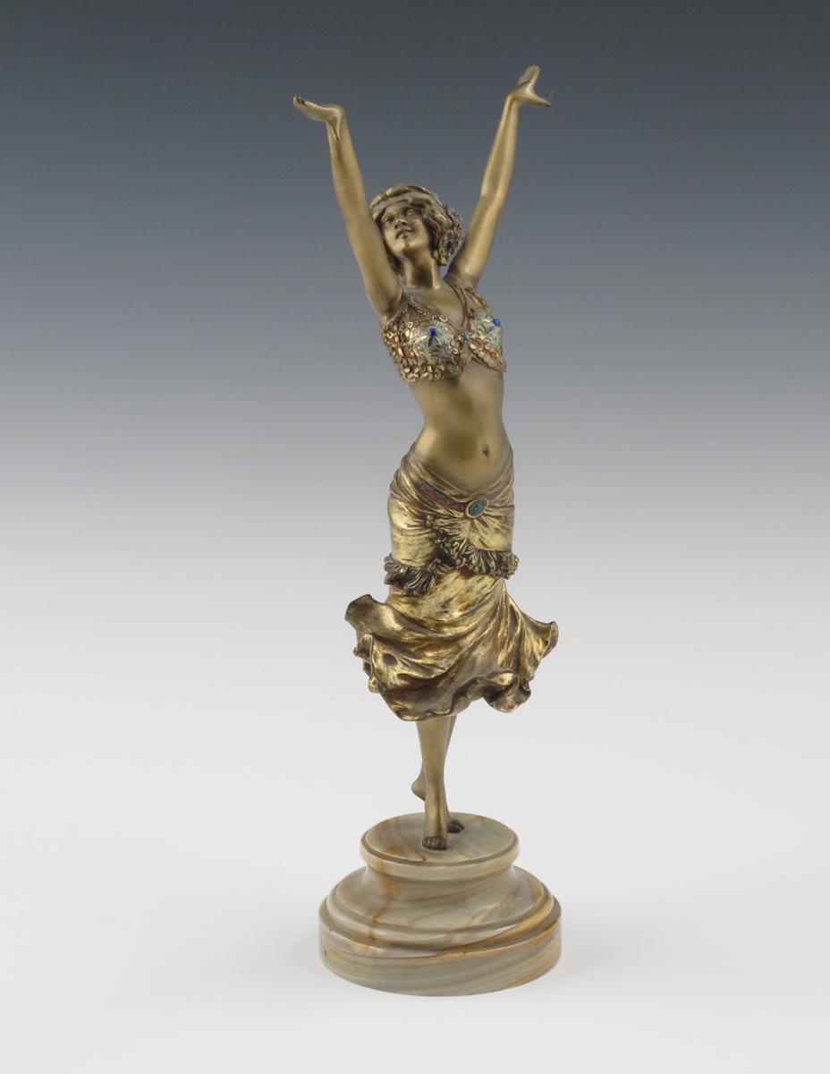 'Radha' a gilt patinated bronze of an exotic dancer cast from a model by Paul Philippe