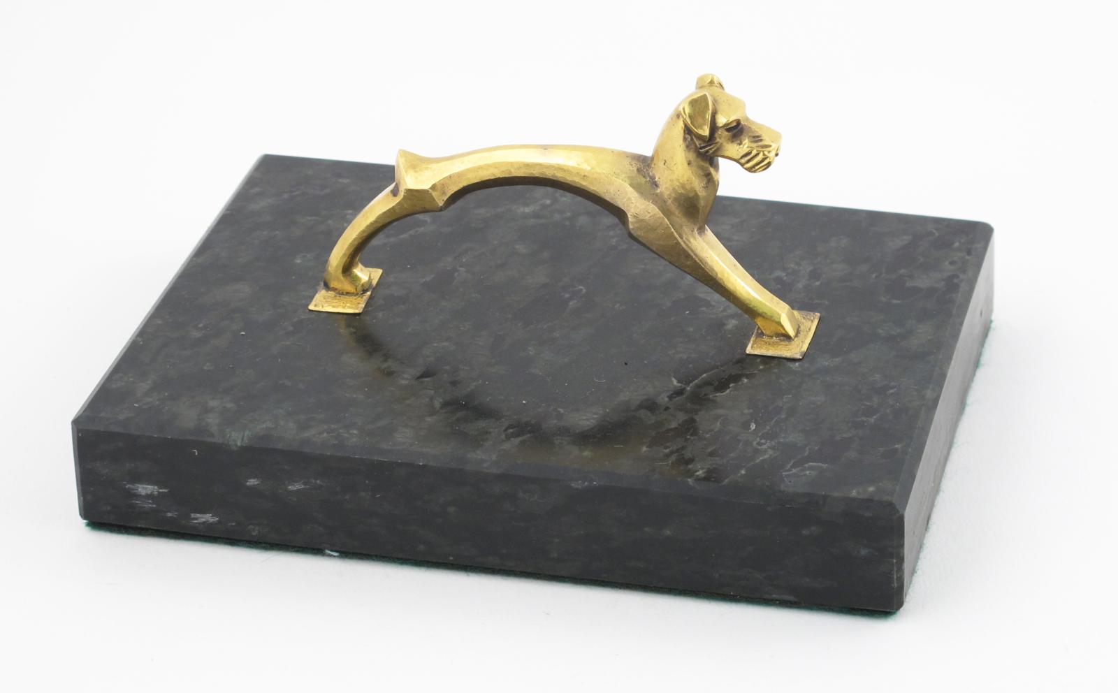 A gilt bronze model of a terrier dog cast from a model by Lemo, on marble base signed to the foot Lemo dog 9cm. wide
