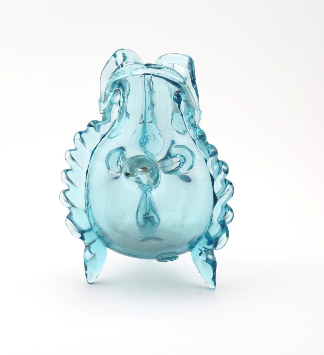 An Art Nouveau Auguste Jean glass vase, the blown pale blue glass with applied column decoration and impressed decoration, on tripod foot impressed seal mark, 26cm. high