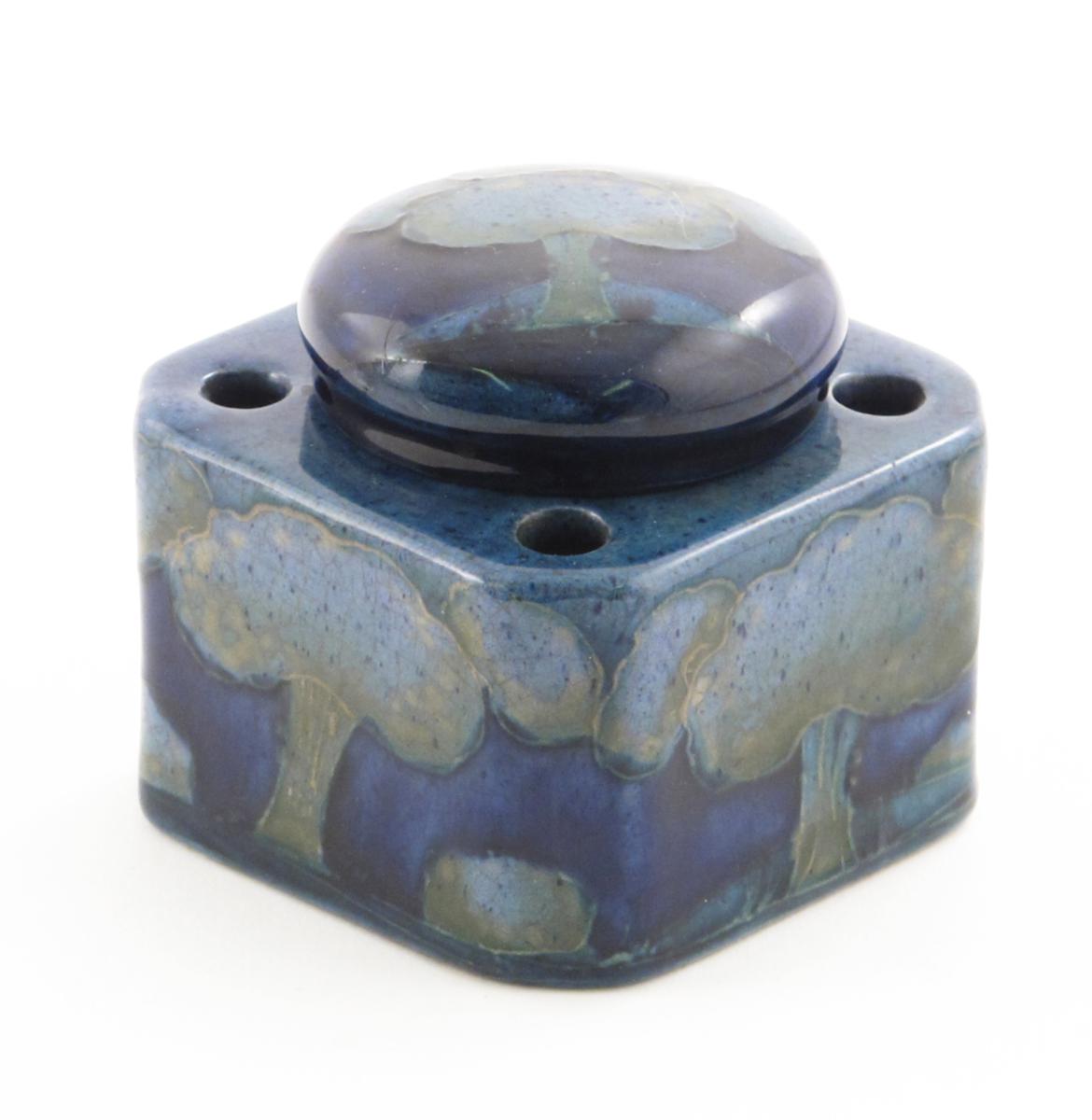 'Moonlit Blue' a Moorcroft Pottery inkwell and cover designed by William Moorcroft