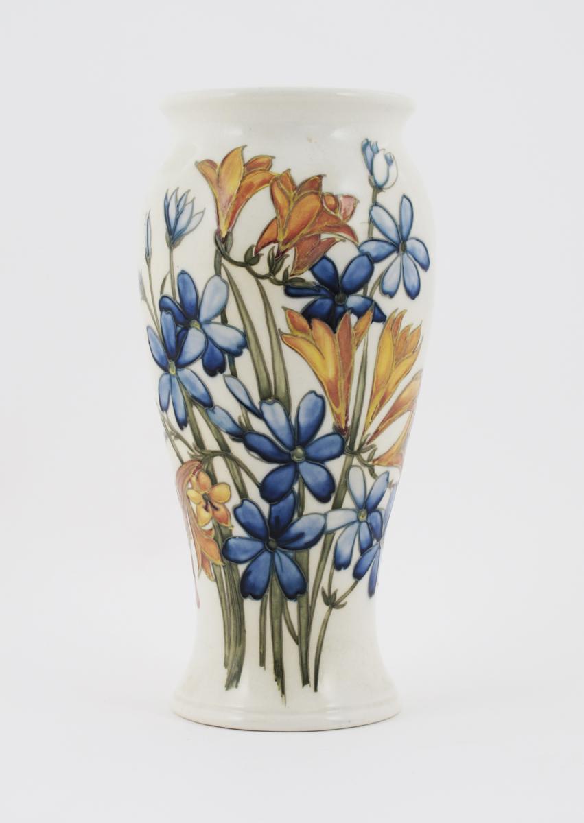 'Springflowers' a Moorcroft Pottery vase designed by William Moorcroft, painted in colours on an ivory ground, impressed marks, painted signature 27cm. high