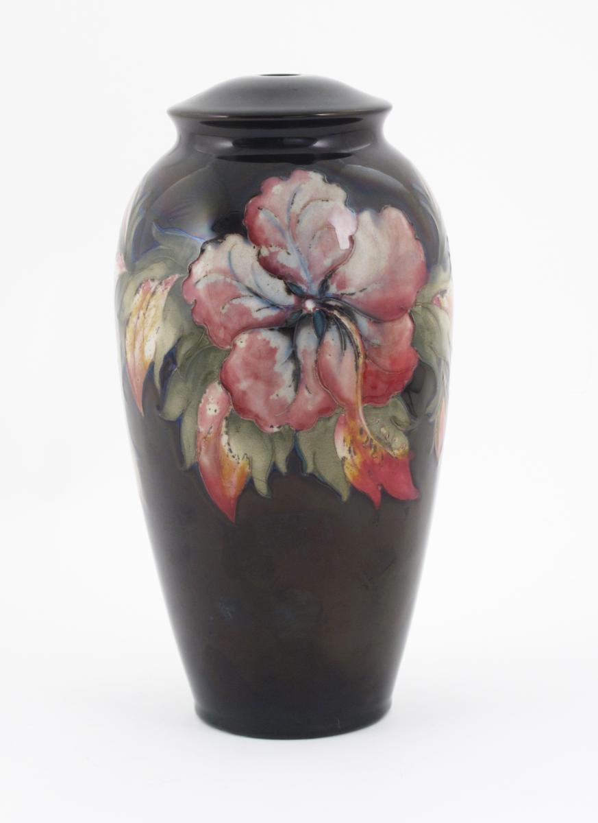 'Hibiscus' a Moorcroft Pottery lamp base designed by Walter Moorcroft
