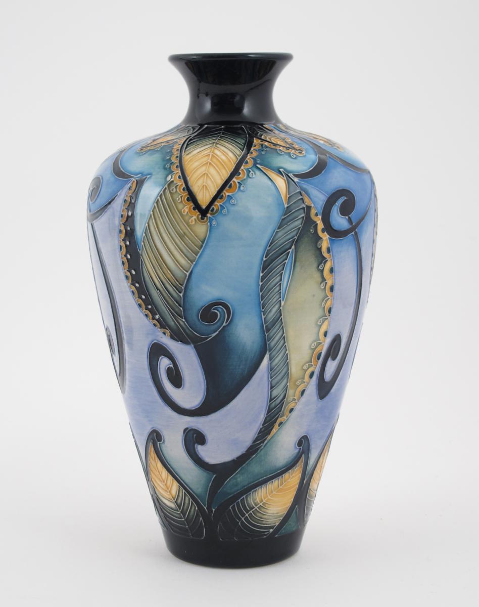 A Moorcroft Collector's Club limited edition vase, dated 2010, shouldered form, tubeline decorated with leaves in shades of yellow and green on a blue ground, impressed, printed and painted marks, numbered 2/3 23cm. high