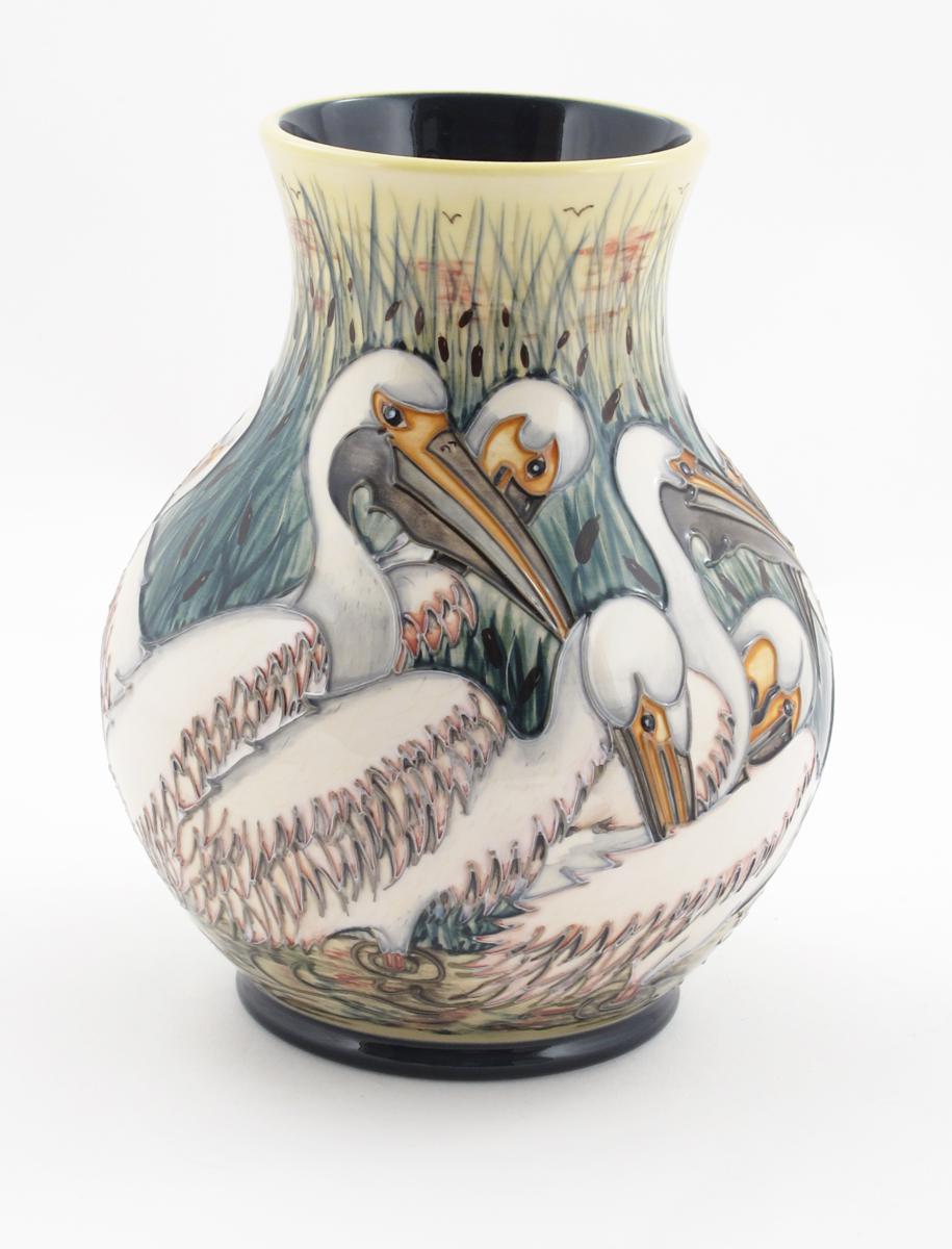 'Pelicans' a Moorcroft Pottery Collector's Club vase designed by Jackie Rowe