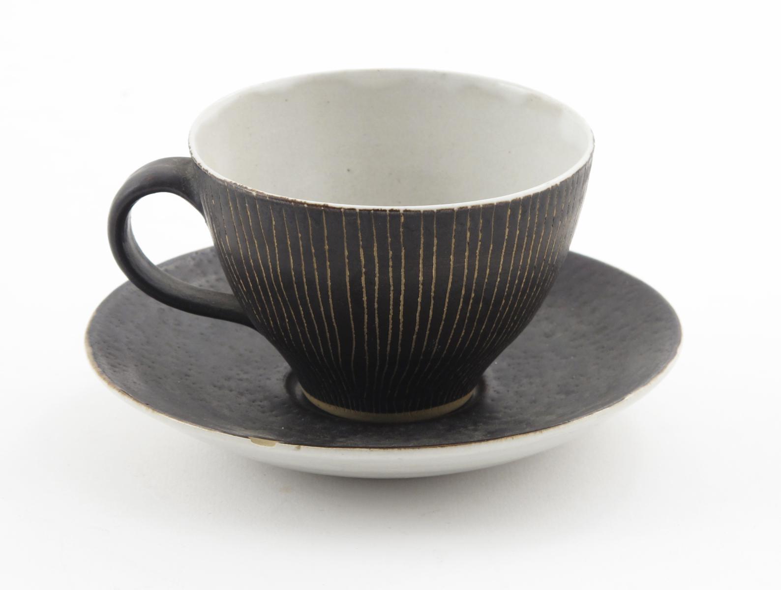 Lucie Rie (1902-1995) a sgraffito decorated coffee cup and saucer