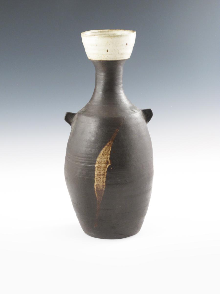 a large Leach Pottery stoneware vase, shouldered form with pinch handles, matt black with splashed speckled white brushstroke and neck, impressed seal marks, 51cm. high