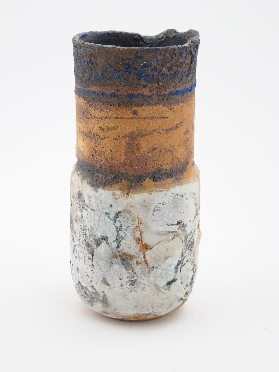 a stoneware shouldered, cylindrical vase, with applied and painted decoration impressed seal mark 22cm. high