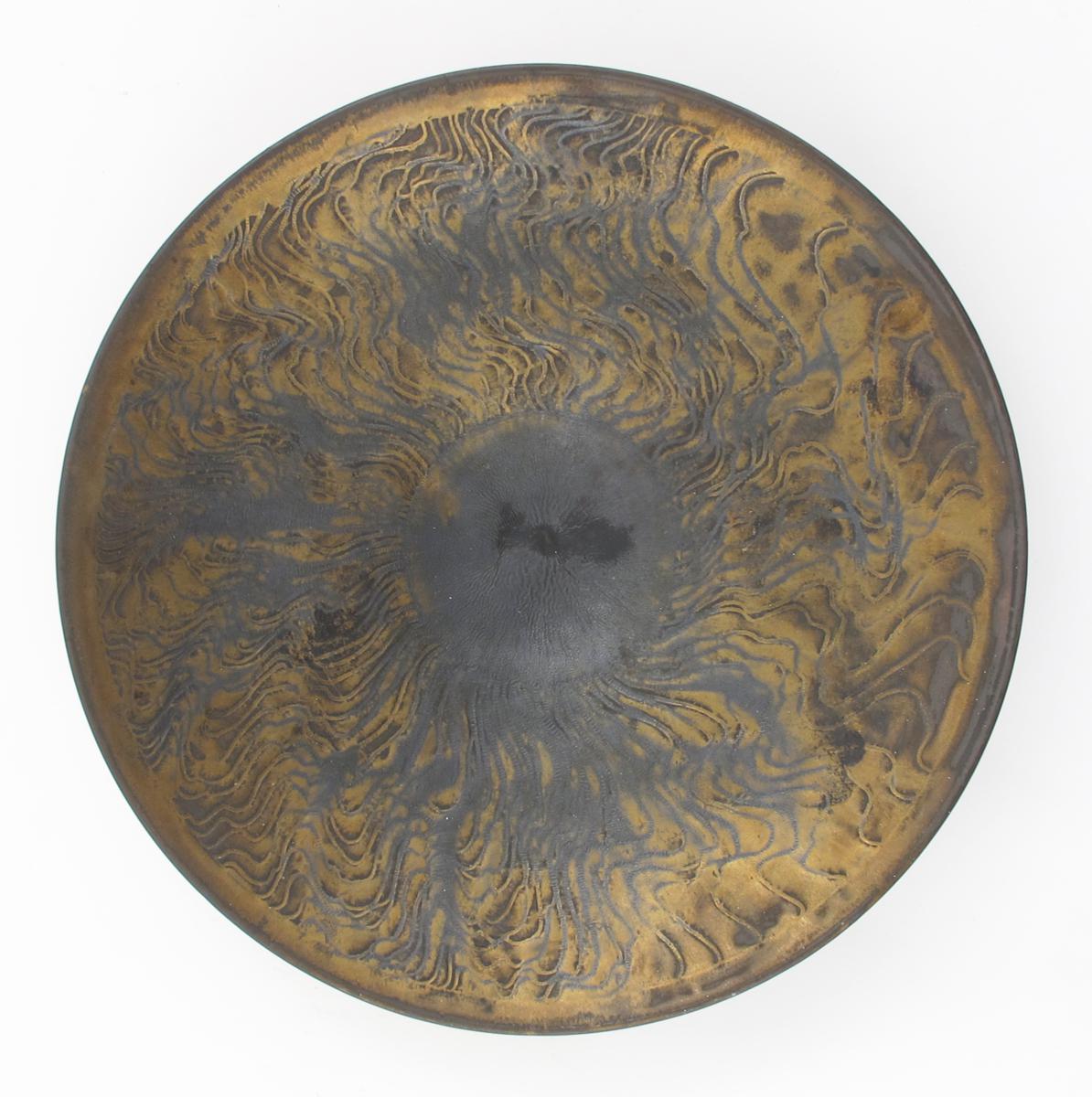 Peter Beard (born 1951) a flaring, footed charger, covered in a radiating bronze lustre glaze impressed seal mark, 35.5cm. diam.