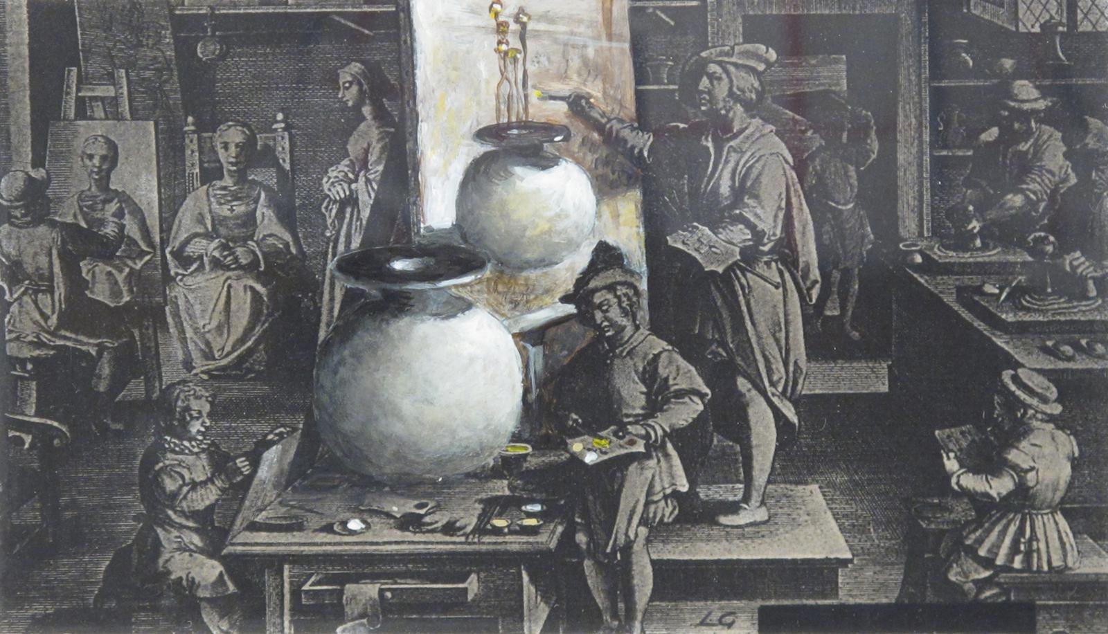 Leslie Gooday O.B.E (1921-2013) The Artist acrylic and Collage on paper