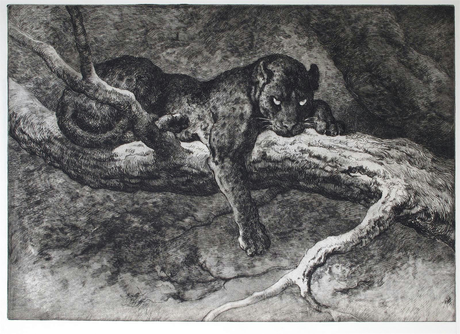 Herbert Thomas Dicksee (1862-1942) Jaguar in moonlight Etching