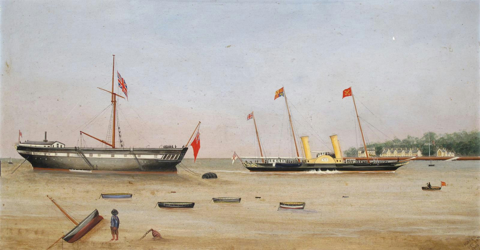 HMY Alberta and a hulk (Not Foudroyant), the last trip of Queen Victoria to Osborne House, Isle of Wight, December 1900