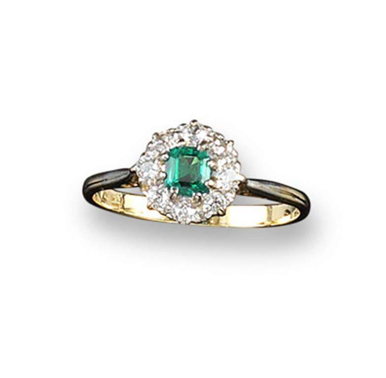 An emerald and diamond cluster ring