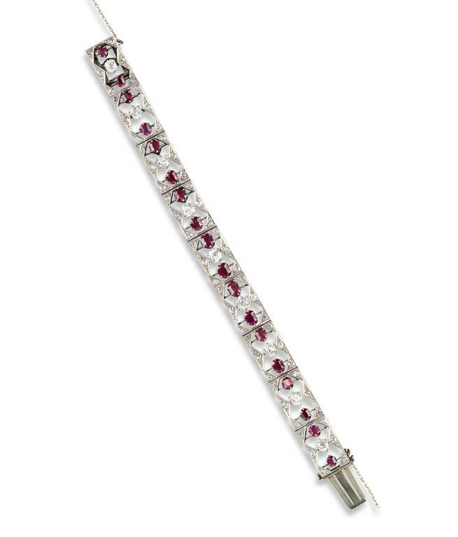 A ruby and diamond panel bracelet