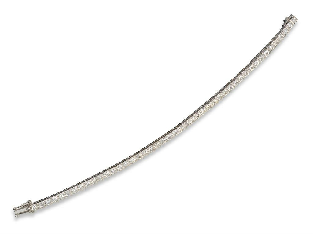 A diamond line bracelet, the circular cut diamonds weigh approximately 5.00cts in total and are millegrain set in white gold. 18cm long.