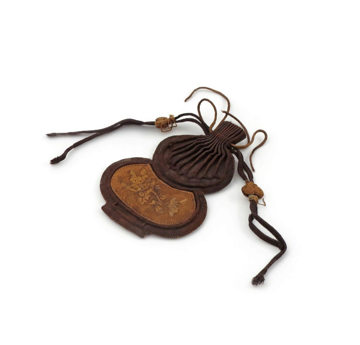 A Chinese brown silk gourd-shaped purse 17th/18th century
