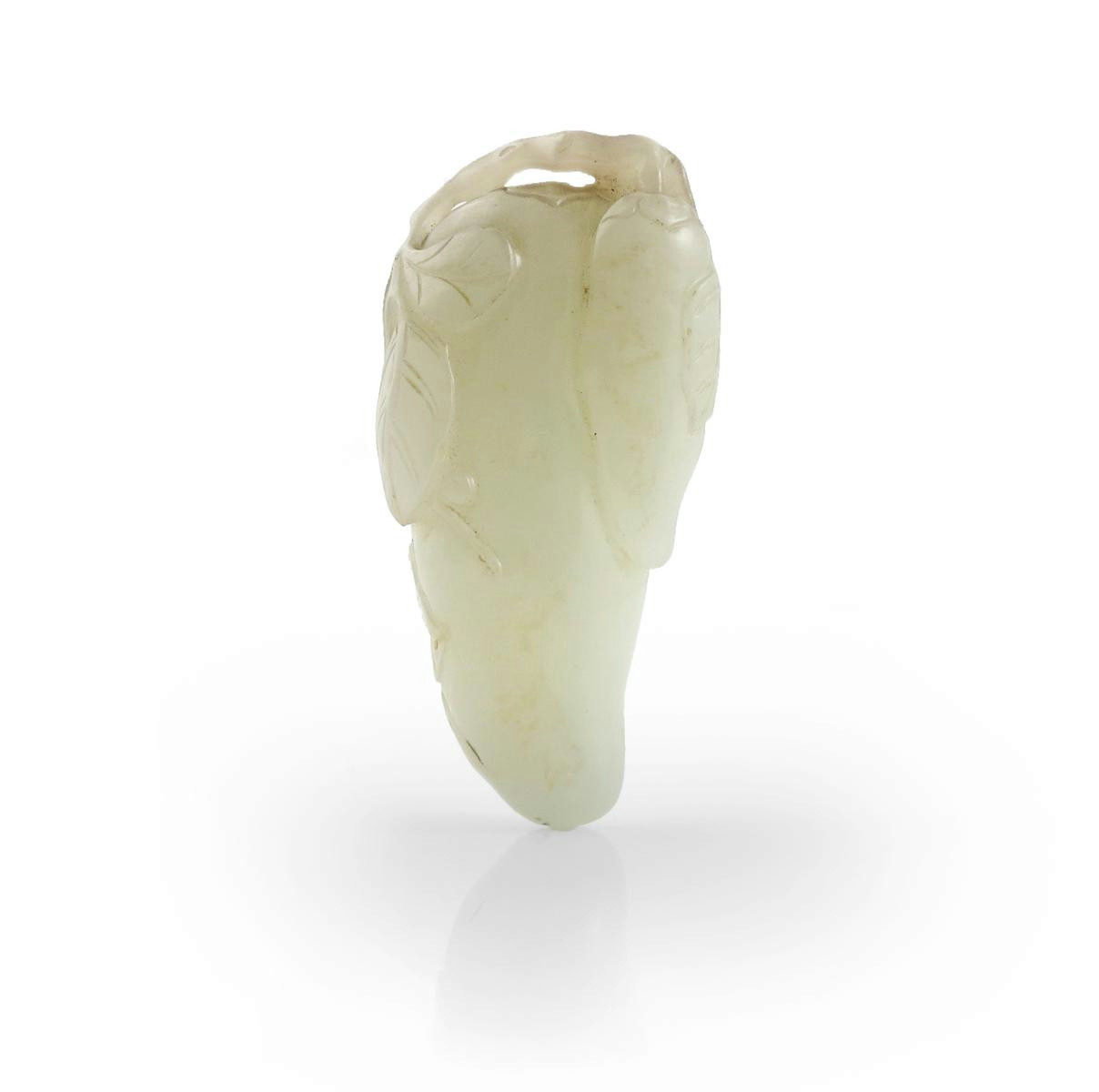 A Chinese white jade snuff bottle 18th/19th century, formed as a fruit issuing from a gnarled branch, with other leaves curling around it, 6.5cm.