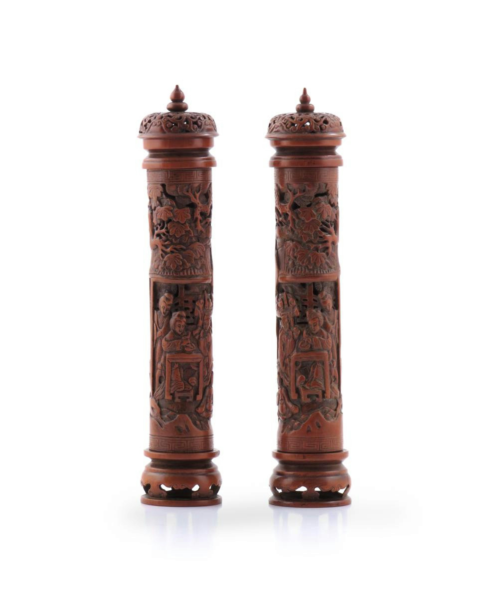 A pair of Chinese box wood perfumieres 19th or 20th century