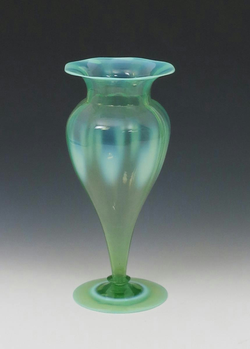 A James Powell & Sons Whitefriars green opaline glass vase