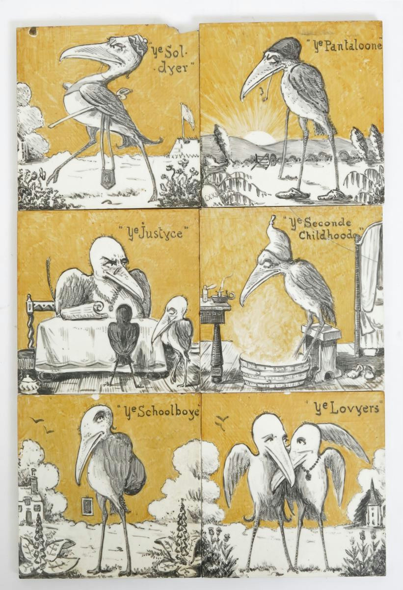 'Seven Ages of Man' six Minton's tiles designed by Alfred Masson