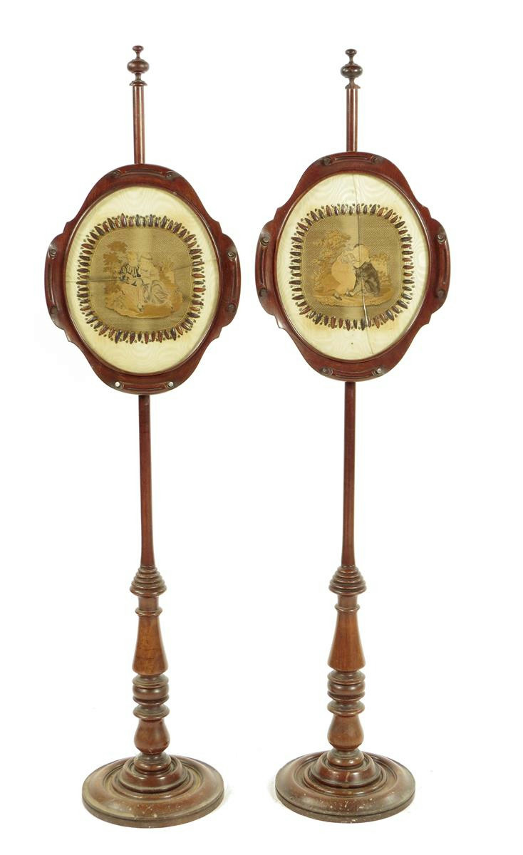 A pair of William IV mahogany pole fire-screens