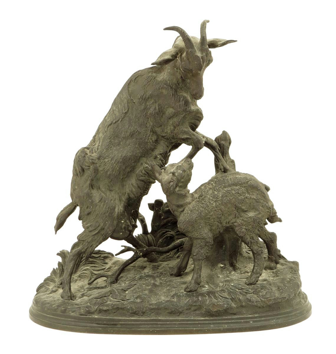 Pierre Jules MĂȘne (French, 1810-1879). Nanny goat and kid, bronze, signed 'P. J. MENE', 23.3cm high, 23.6cm wide.