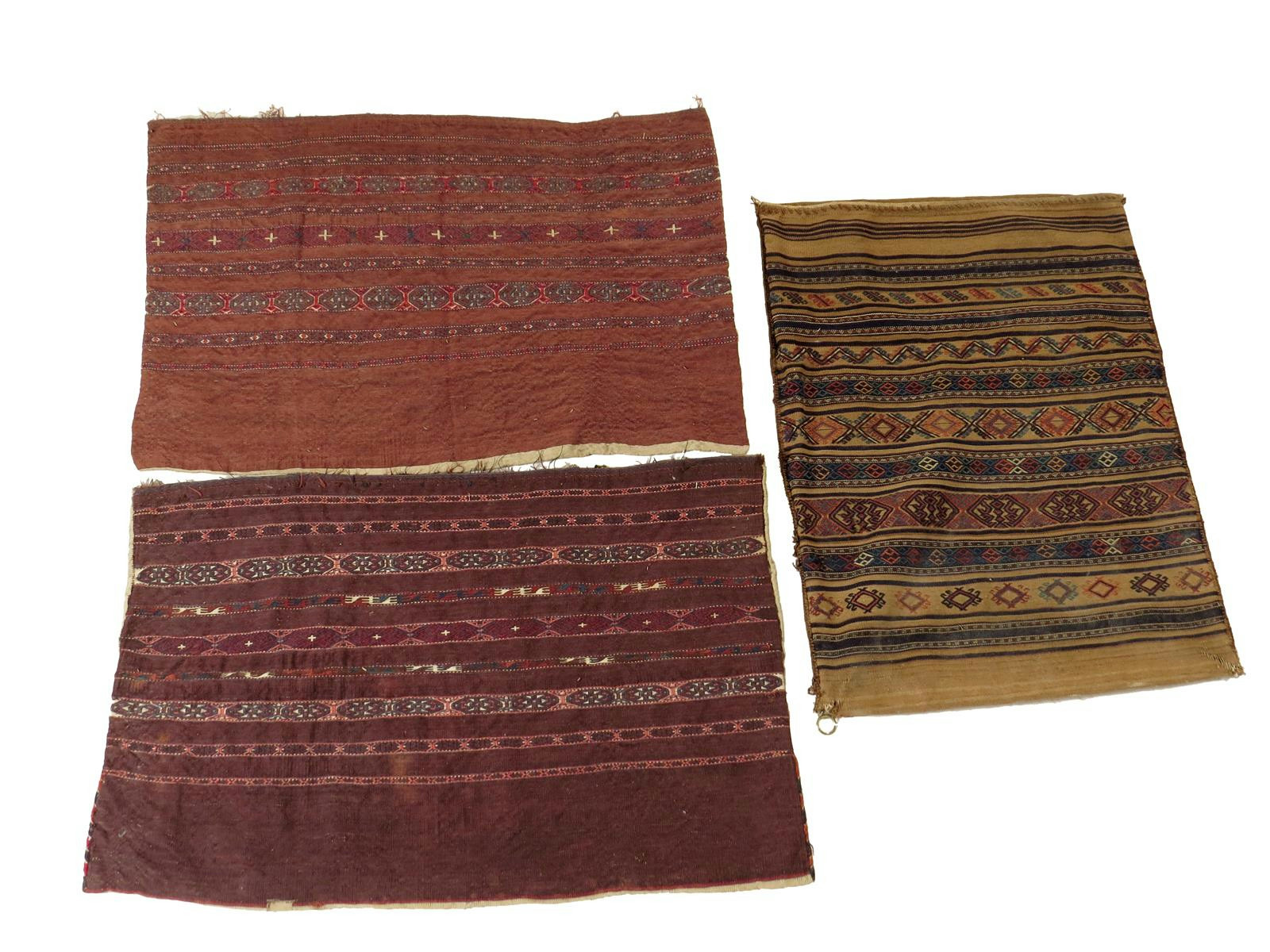 Two Turkman ak-chuval, Turkmenistan, 20th century, 78 x 119cm and a Kurdish grain sack. (3)