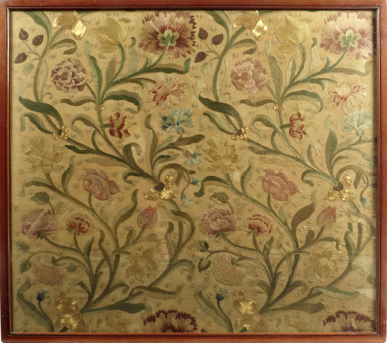 A crewel work needlework panel