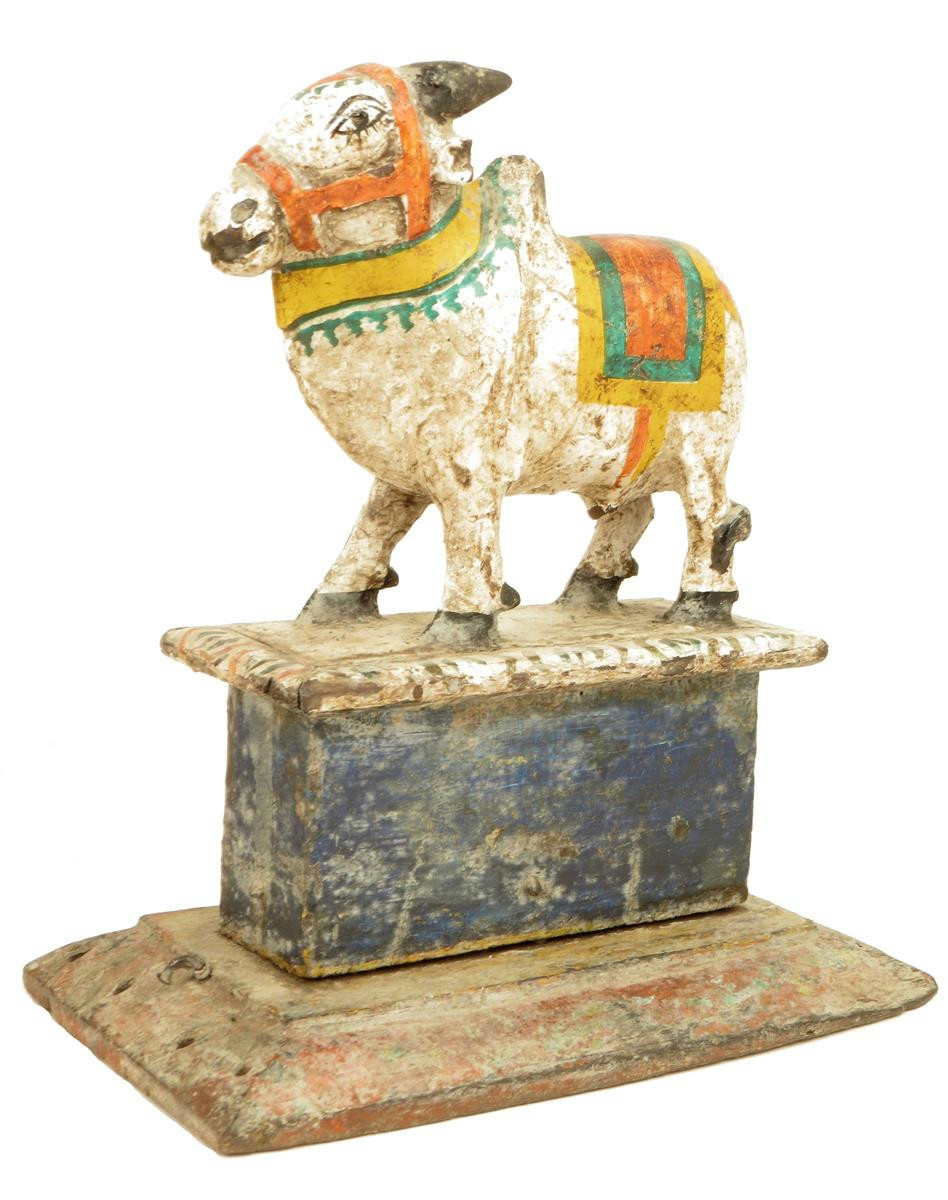 A carved wood and polychrome decorated model of a brahman cow
