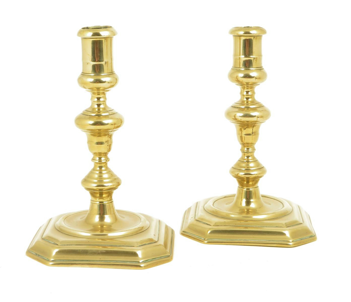 A pair of William & Mary brass candlesticks