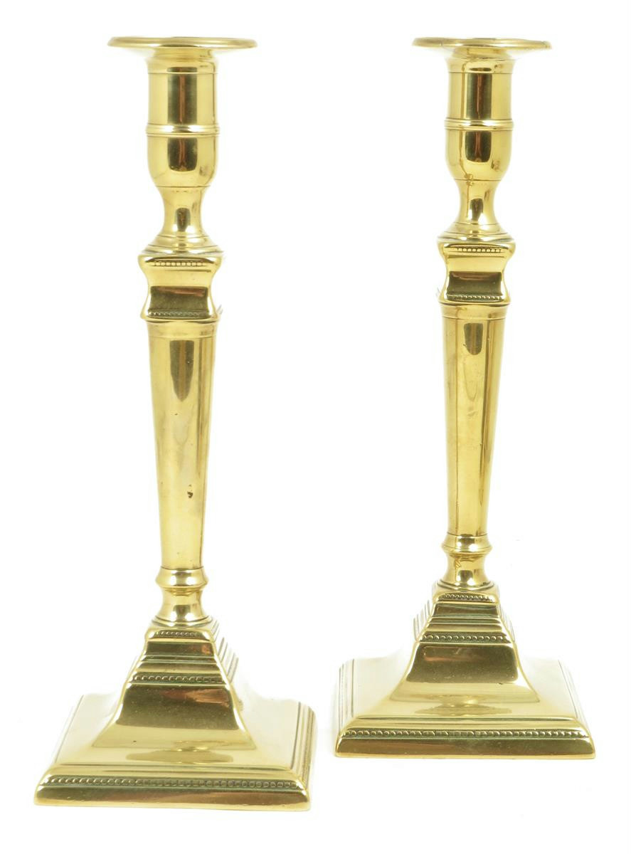 A pair of George III brass candlesticks