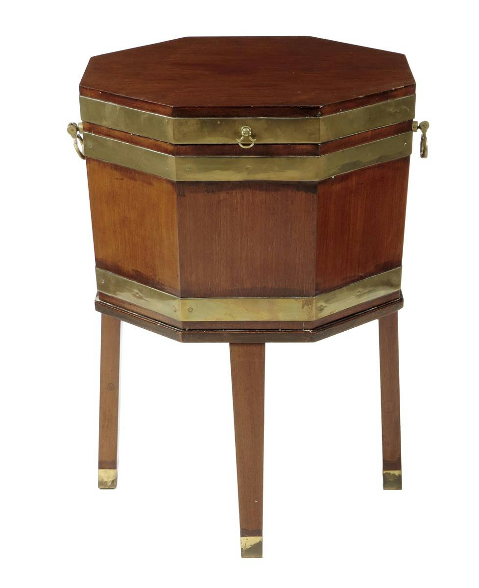 A mahogany octagonal brass bound wine cooler in George III style