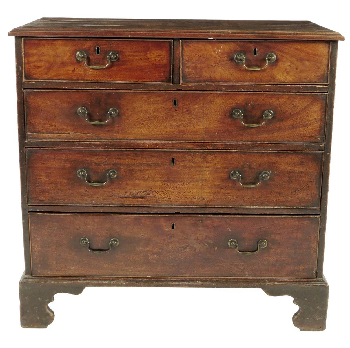 A George III mahogany chest, the applied moulded edge top above two short and three long graduated drawers, fitted with brass handles 91.6cm high, 95cm wide, 51.2cm deep.