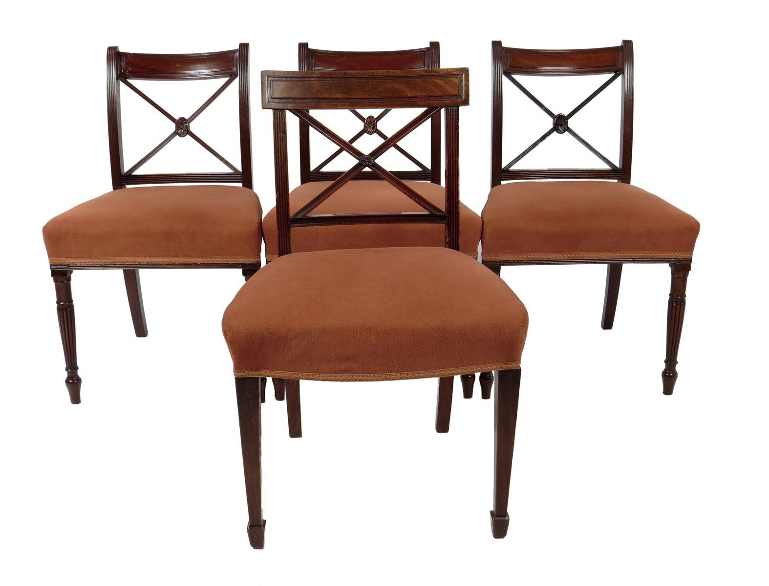 Four early 19th century mahogany side chairs, each with an 'X' splat back. (4)