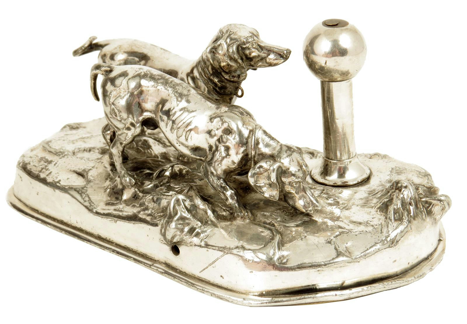 A chrome plated table lighter, modelled with two hounds, early 20th century, 6.2cm high, 13.3cm wide.